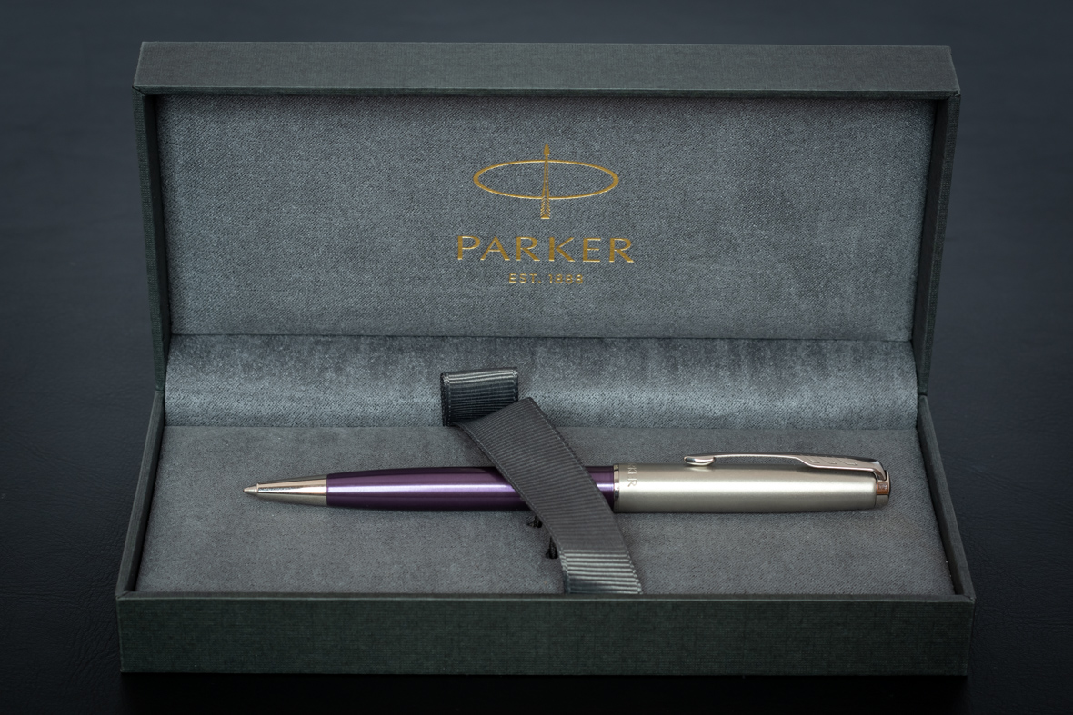 Ручка шариковая Parker Sonnet Sand Blasted Metal&Violet Lacquer от официального дилера Parker в Смоленске. Вы можете дополнительно заказать гравировку, которая подчеркнет Вашу оригинальность и придаст памятность статусному подарку. Все ручки Паркер поставляются в фирменном футляре.